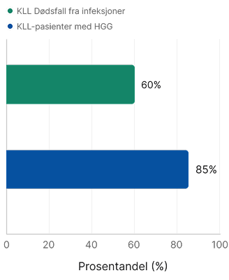 85% opplever HGG på et tidspunkt (på grunn av sykdom i seg selv og/eller behandling)5.